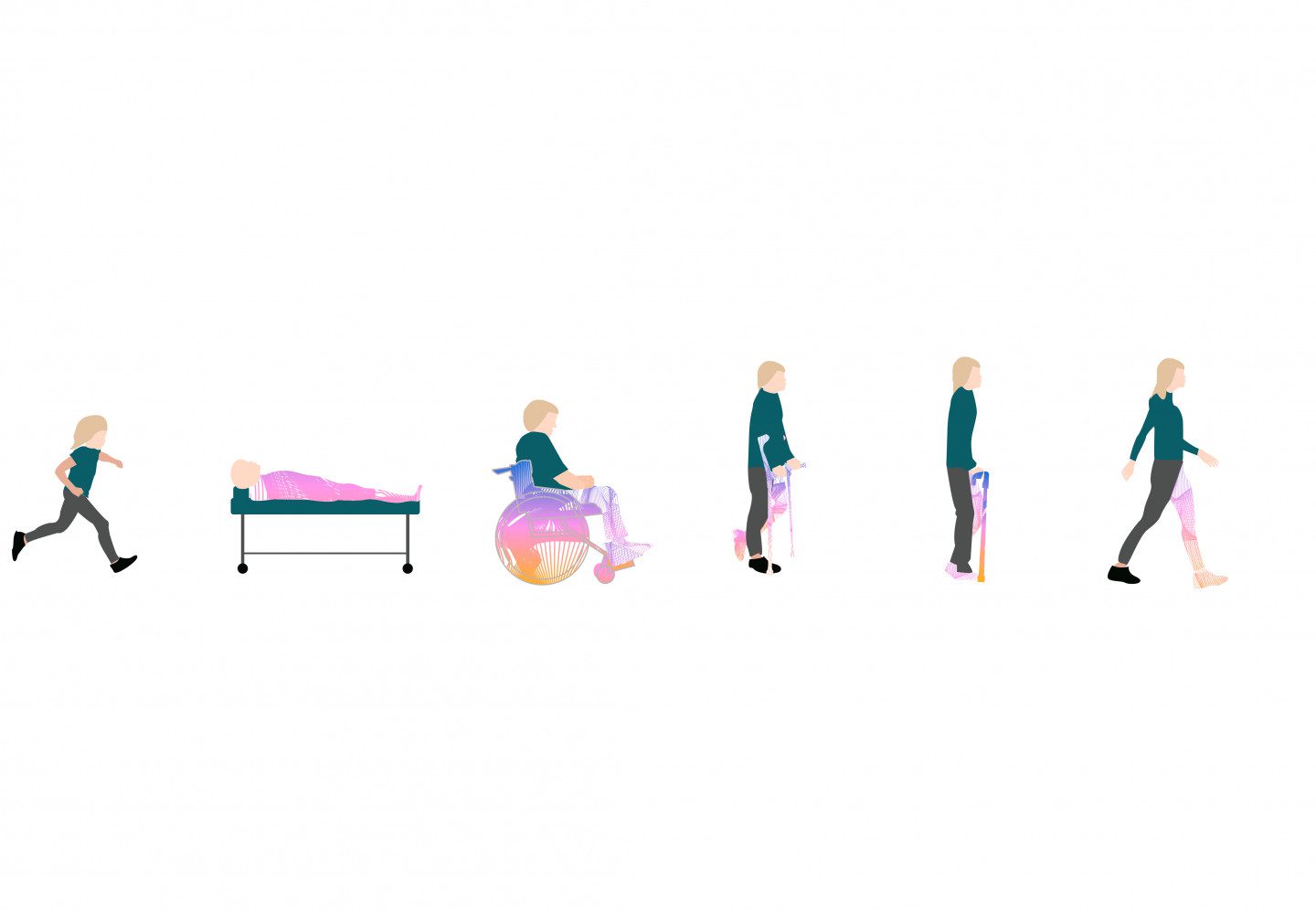 Ces dessins sont des exemples de portraits du handicap. Je souhaite mettre en avant l’idée de la prolongation du corps à travers le handicap. Sur chaque portrait, le handicap est représenté de manière filaire.