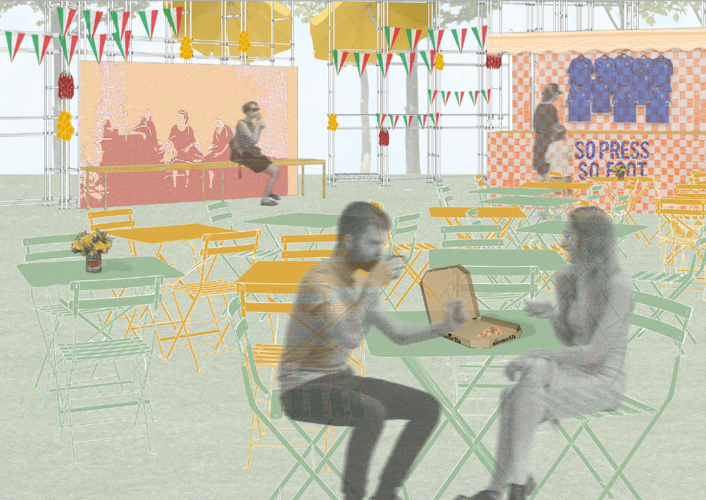 Cette installation scénique propose une réponse globale face aux enjeux d’un festival : une installation connue et accessible, une empreinte carbone minimale, une expérience scénographie immersive et une intégration des usages au sein de l’intervention.