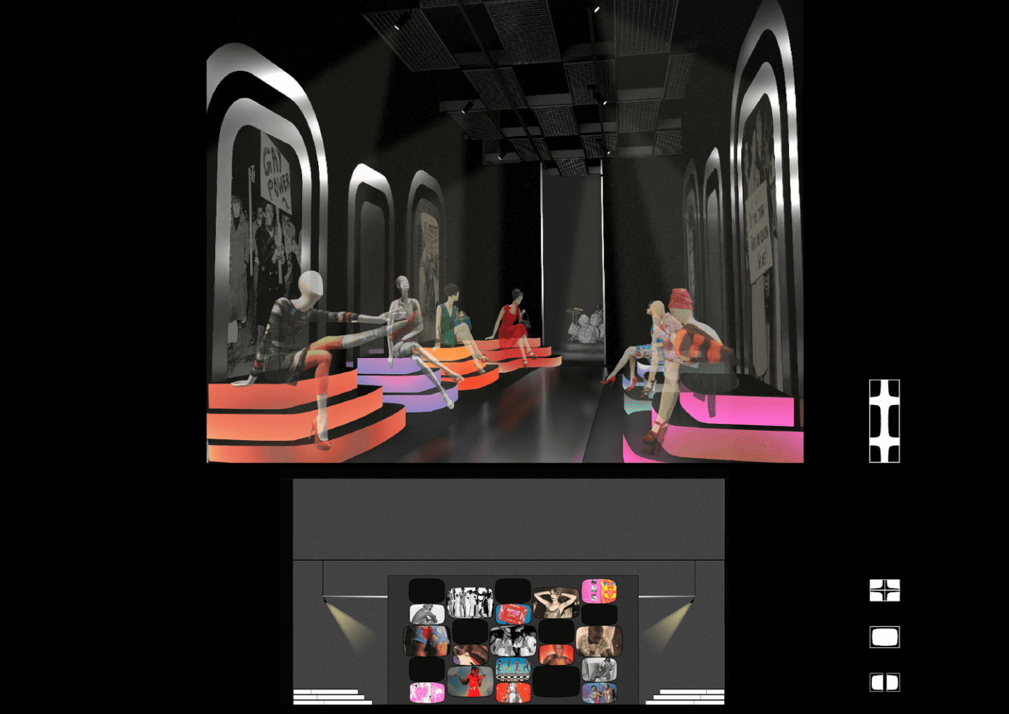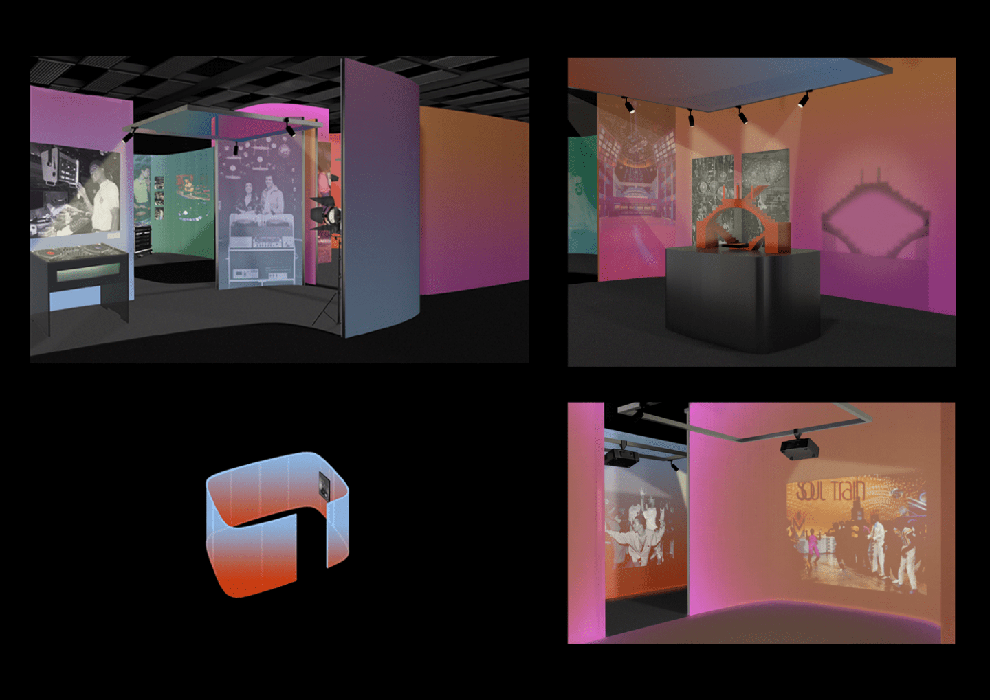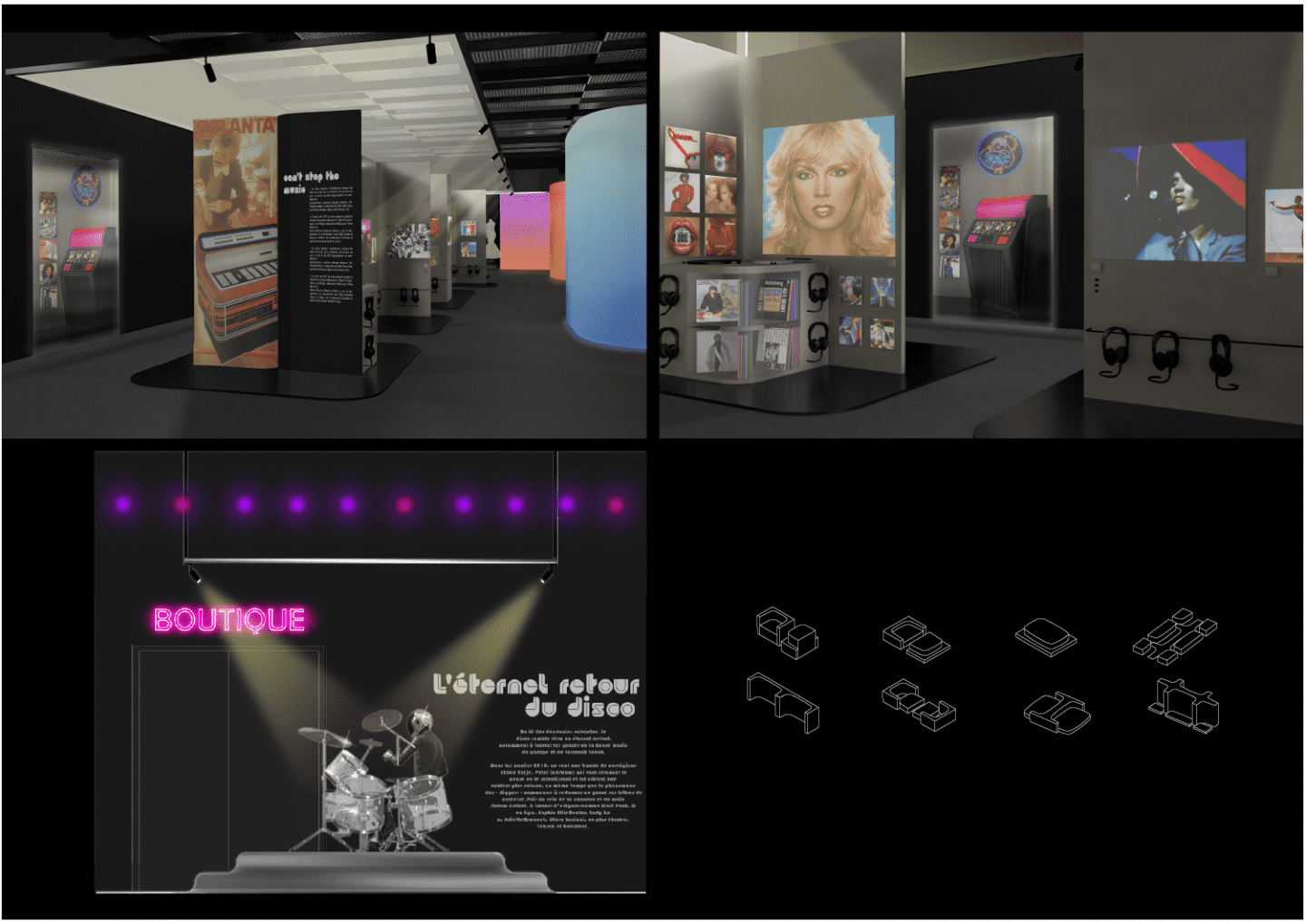 This project emerges from two paradoxes of disco: its hedonistic spirit and its revolutionary nature, both of which got people moving for over a decade. This movement continues to resonate today, which is why the exhibition brings the visitor to the stage, to immortalise these values. They are presented with three worlds. The first is based on the social approach of disco. An interactive programme gives viewers agency as they discover artworks and music simultaneously. They then experience the cultural effervescence of the 70s as they work their way through textile artworks and modules. Here, visitors dance and parade to the rhythm of this immersive, disco-like scenography. They take in the musical world of disco through listening devices, cadenced by the animated artworks.