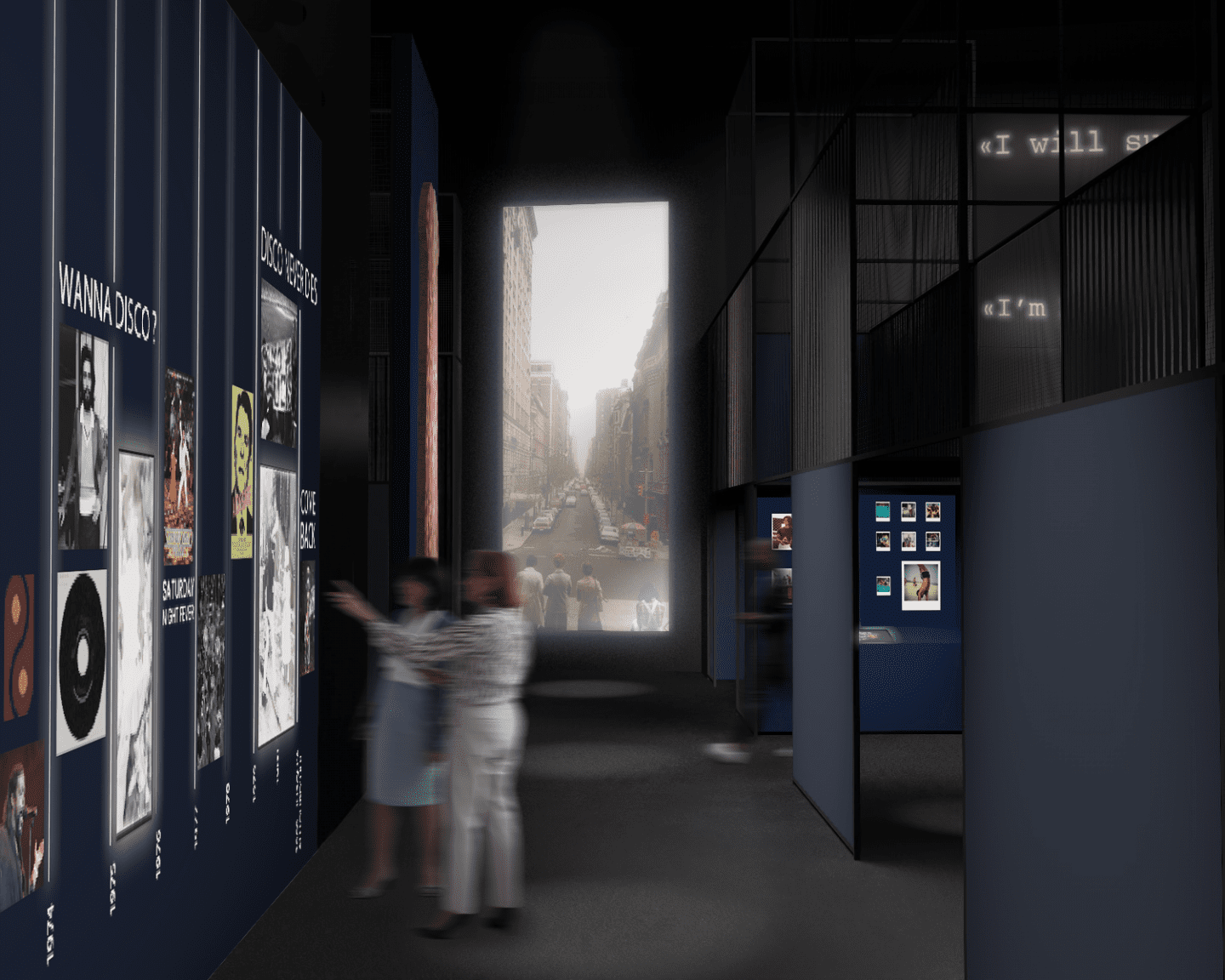 L’exposition Les Corps Affranchis du Disco à la Philharmonie de Paris traverse l’époque du Disco en immergeant le visiteur dans une évocation du New-York des années 1970 suivie d’un univers de Discothèque.