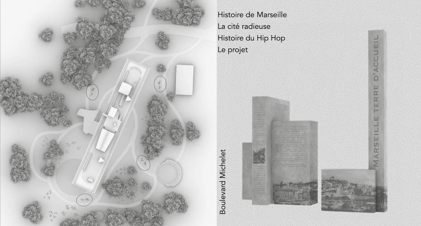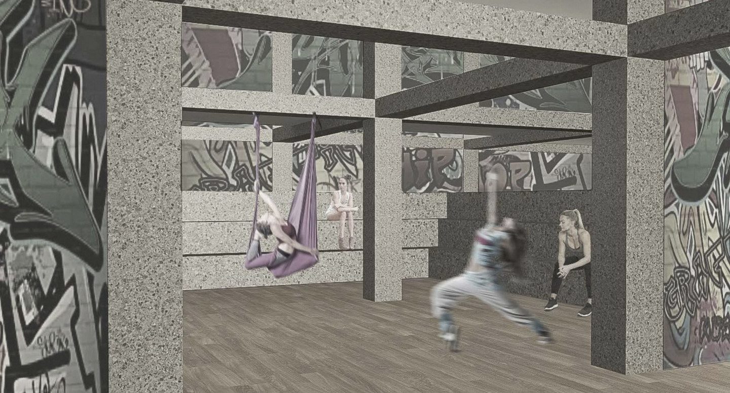 Marseille is a dynamic and changing city in which different cultures abound, ones it has been home to since ancient times, but this abundance is also the source of violence and racism. It had a reputation for being a violent city, until young people harnessed hip-hop culture from New York, propellingMarseille into the spotlight.My project turns the Cité Radieuse into the home of hip-hop dance. Le Corbusier designed the circulationareas as “streets”, which inspired me to design an urban space that artists, residents and visitorscan make their own: main square, small squares, alleyways, avenues and walkways create a new lexical field for the street that emerges on the third and fourth floors of the Cité Radieuse and officially becomesLa Maison du Fada.