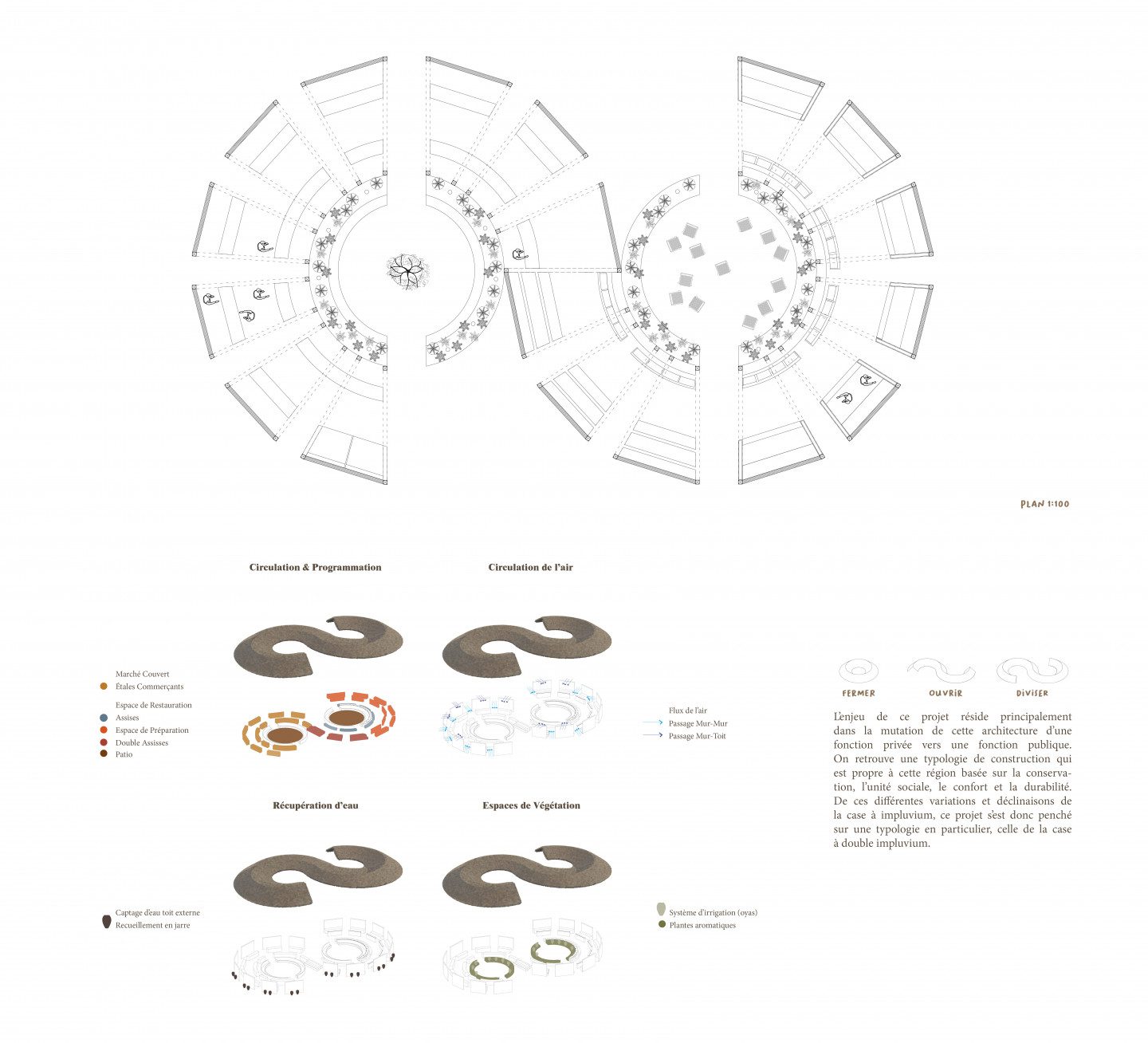Ce projet s’implante dans la ville de Ziguinchor, proche du site universitaire et en relation directe avec la ferme agroforestière. Ce projet propose une programmation hybride.