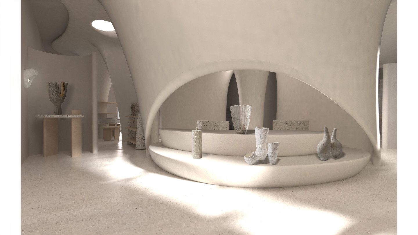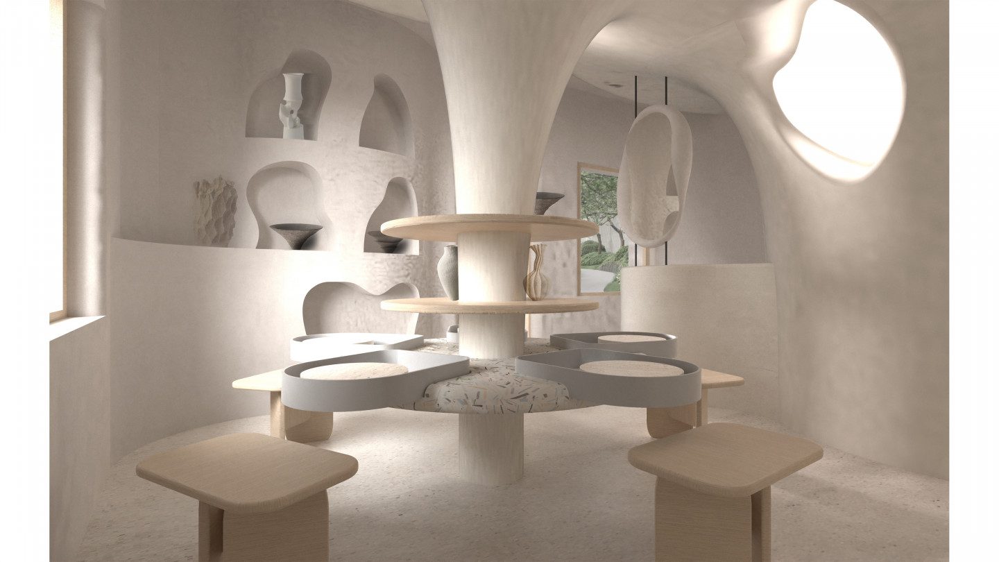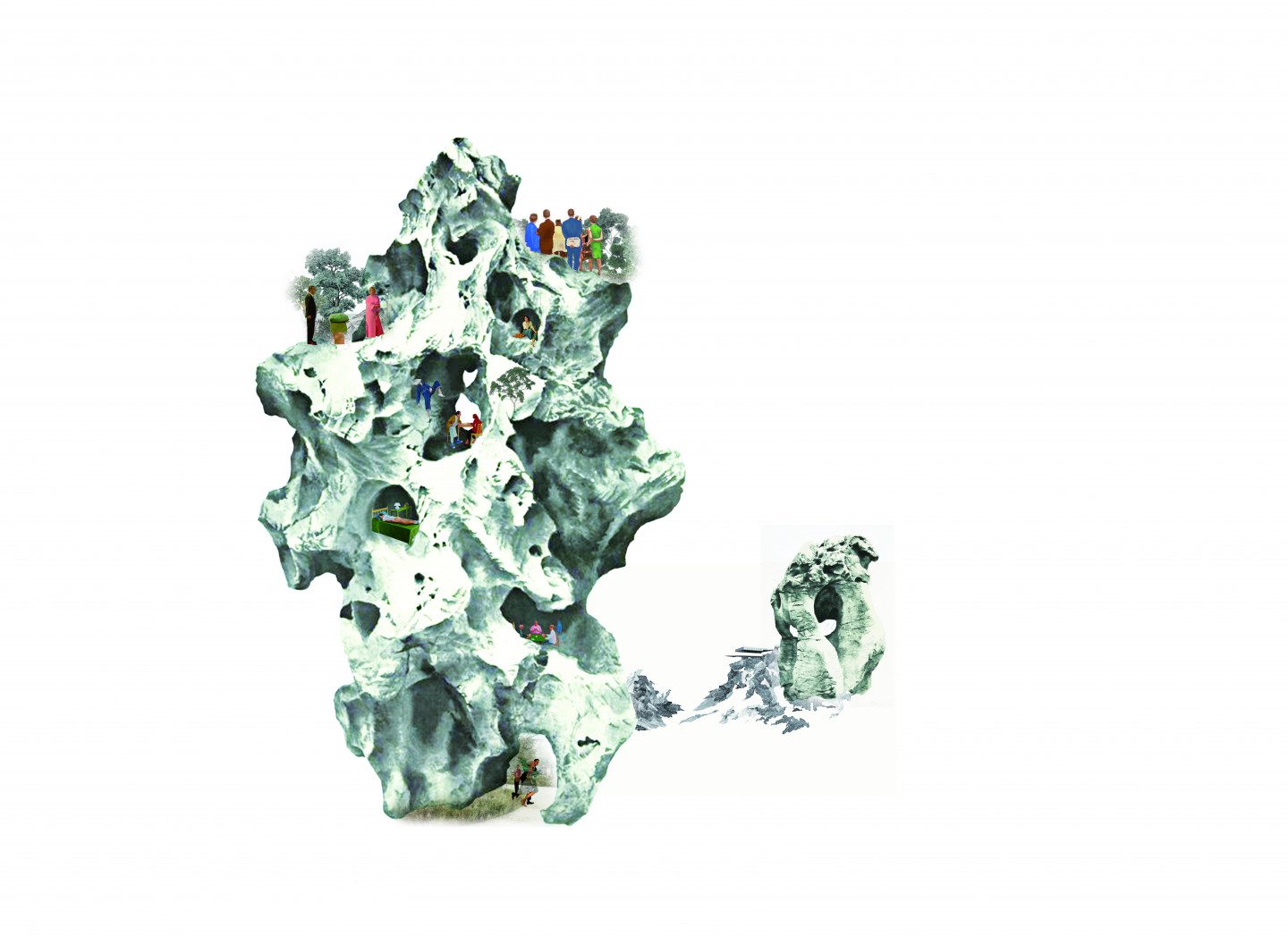 Artisanal creation is a relationship between nature and the spiritual objects that enrich our existence. The environment and way of life in the village of Xie Ma Qiao, where ceramic artists once gathers, have radically changed with the evolution of history and the rise of mechanisation. To rise to this challenge and recover the now-lost local identity and cultural confidence, we need to reconsider the areas where crafts are practised and offer new and innovative spaces in line with the contemporary spirit and expectations. I wanted to develop a symbiotic space that helps perpetuate the memory of a material, Taihu stone, as well as its shaping, by reviving the techniques, methods and ancestral knowledge of craftspeople.