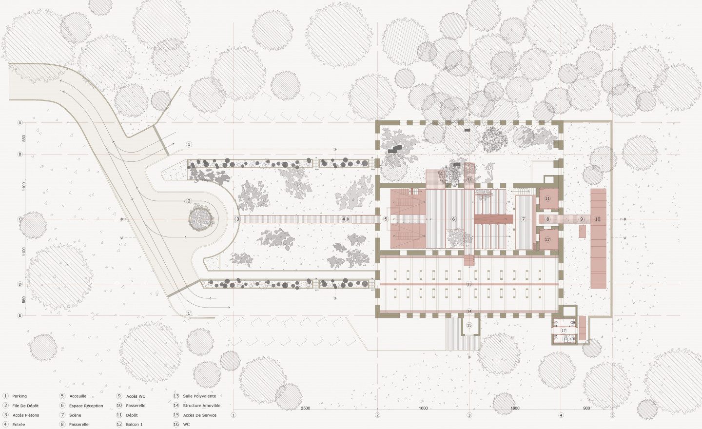 A travers un projet d’aménagements simples, un travail de scénographie et une mise en lumière du lieu, le site est préservé dans son état actuel. Mon intervention est légère et éphémère, elle survole l’existant, avec une structure simple en bois recouverte soit de cortaine soit de teck, tous deux des matériaux faits pour vivre et vieillir
