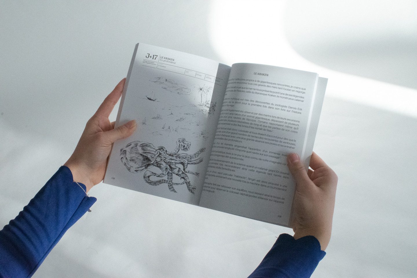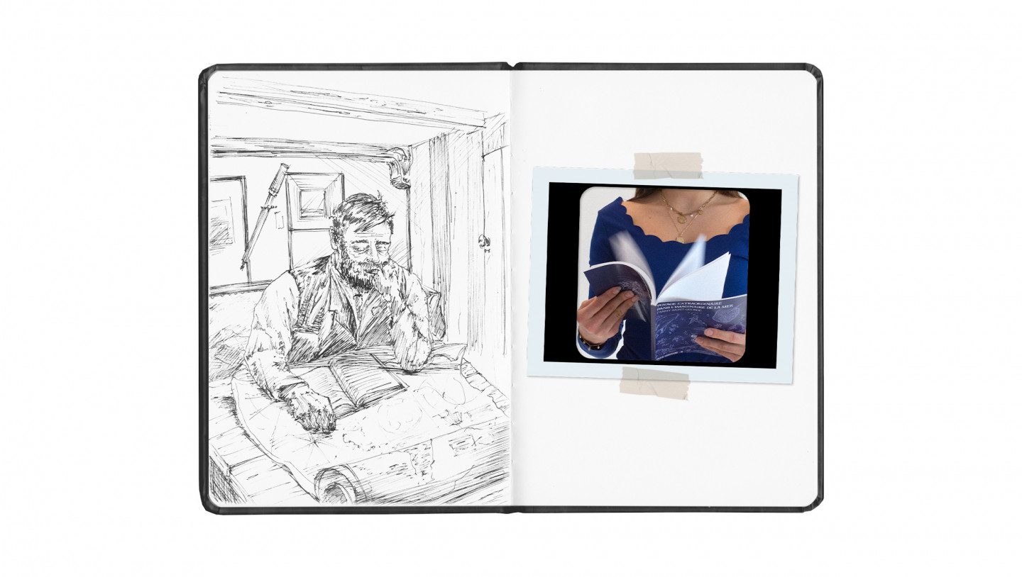 J’ai choisi de scénariser mes recherches ainsi que mes expériences plastiques et sensorielles à travers la création d’un personnage fictif, celui du marin, qui devient l’acteur de mon imaginaire.