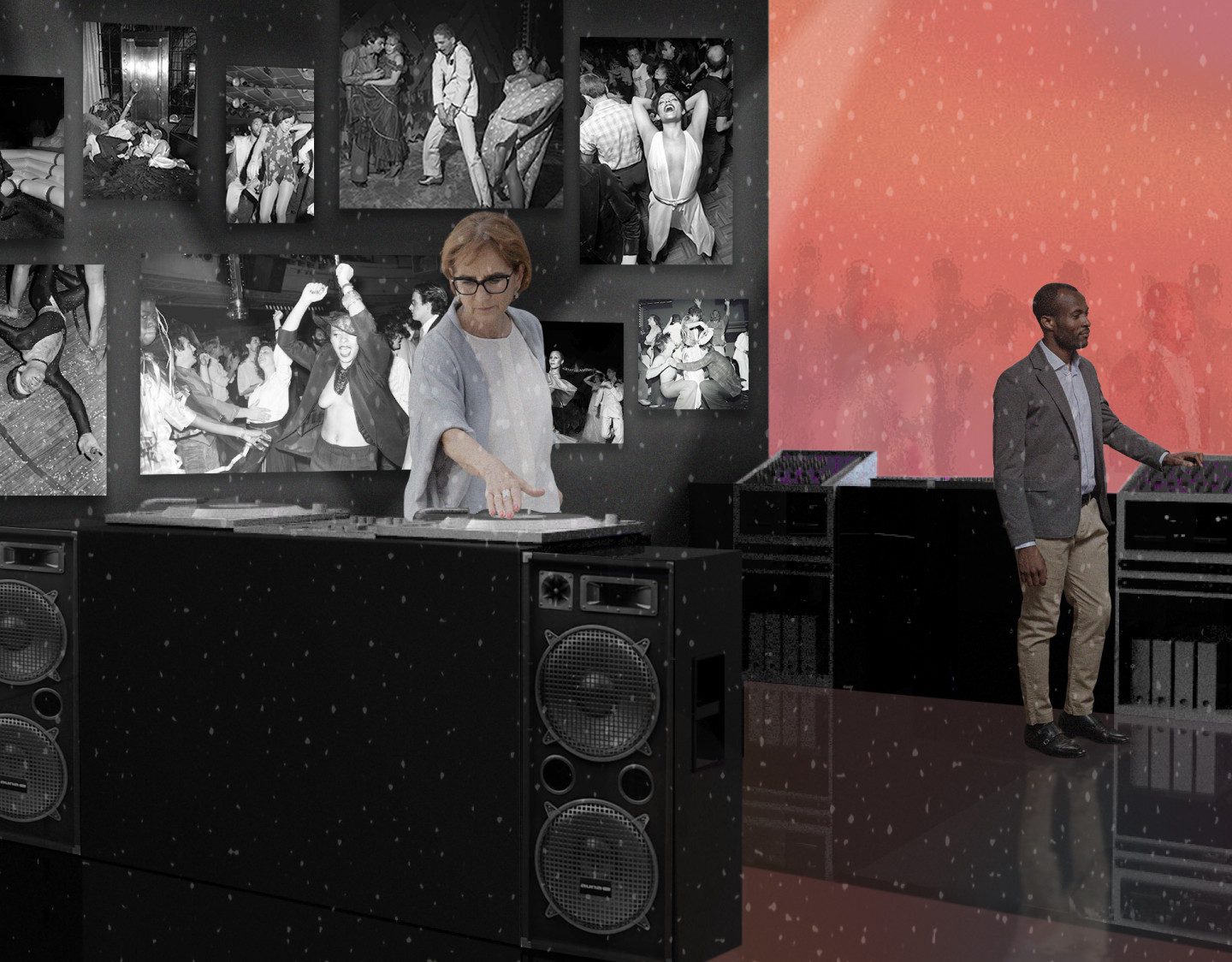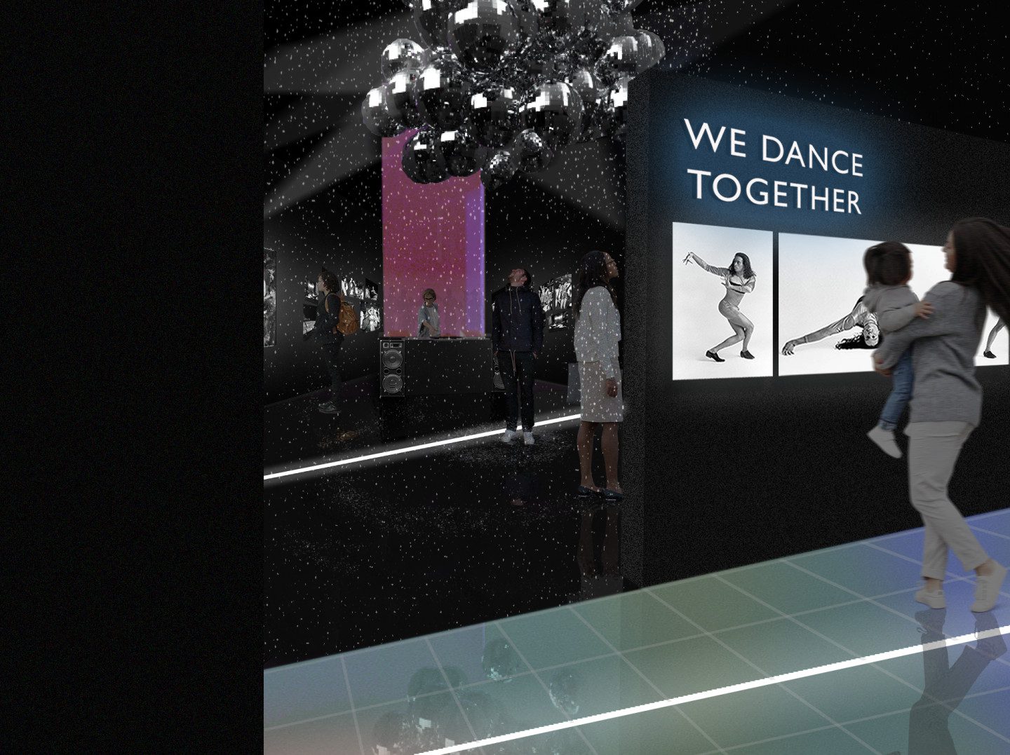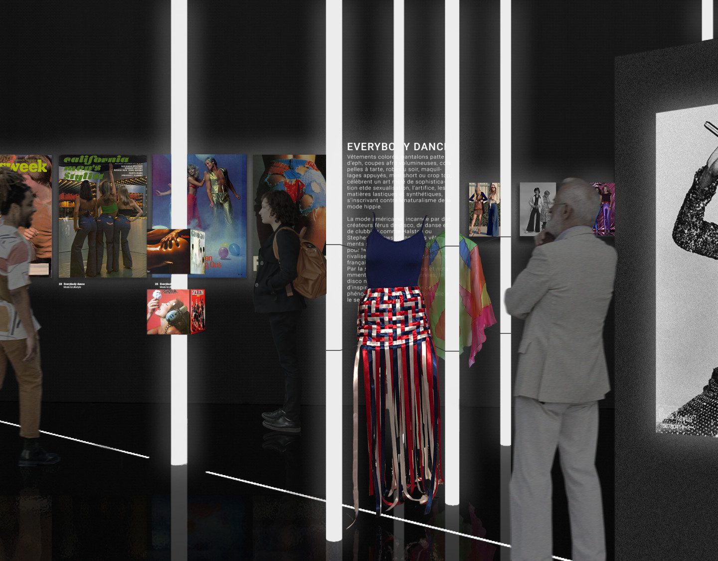 Le disco est un état d'esprit qui s'est manifesté et développé à la fois aux États-Unis et en Europe dans les années 1970. Une fusion à la fois corporelle, musicale, sociétale ou encore idéologique, qui fait de cette période un tournant majeur dans l'évolution de notre société. Placée au centre de l’exposition, «la fusion» se manifeste au cœur de la boîte de nuit et plonge le visiteur instantanément dans l’esprit du disco, grâce aux jeux de lumières, de reflets, de couleurs et de musique. De ce point de départ, convergent tous les rayons lumineux, lignes conductrices et constructives de la scénographie, à partir desquelles toutes les thématiques de cette époque rayonnent sur l'ensemble de l'exposition. Le visiteur est alors amené à découvrir l'univers du disco sous ses multiples facettes.