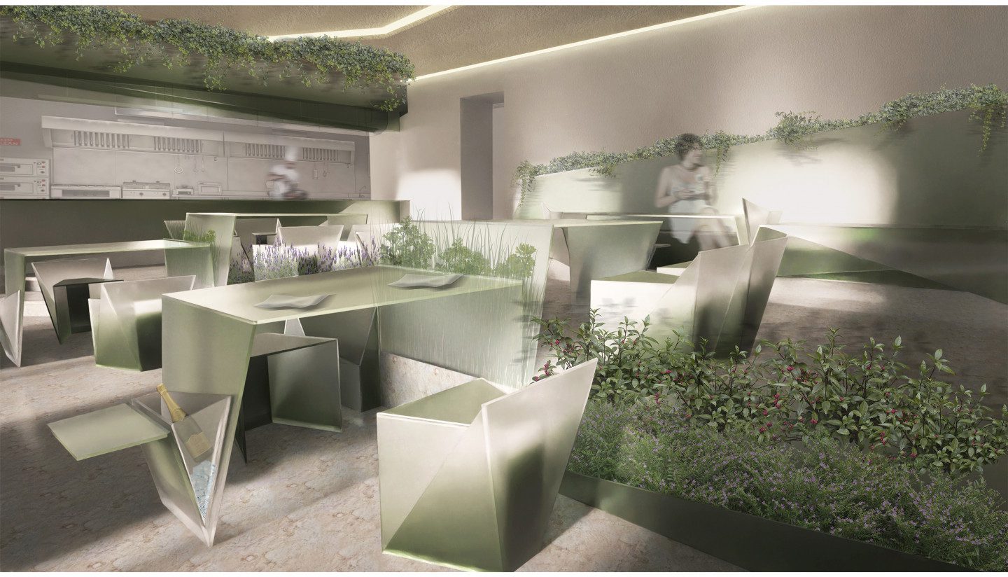 Mon sujet imposé se trouve dans un centre d'art à Toulon. En raison de la diversité de l'environnement local, j'ai puisé mon inspiration dans la fugacité et l'éphémère du cycle de vie des plantes pour proposer le concept de vivre l'instant et profiter de la vie. De plus, la partie restaurant est mon pari-pris, où j'ai créé une série de meubles inspirés des feuilles, tout en utilisant des matériaux écologique a l'environnement. J'ai utilisé la couleur pour créer une atmosphère légère et naturelle dans l'espace, et les tables de restaurant permettent également de cultiver des herbes utilisées pour les repas. Le processus de cueillette des légumes est aussi un témoignage de notre respect envers la nature.