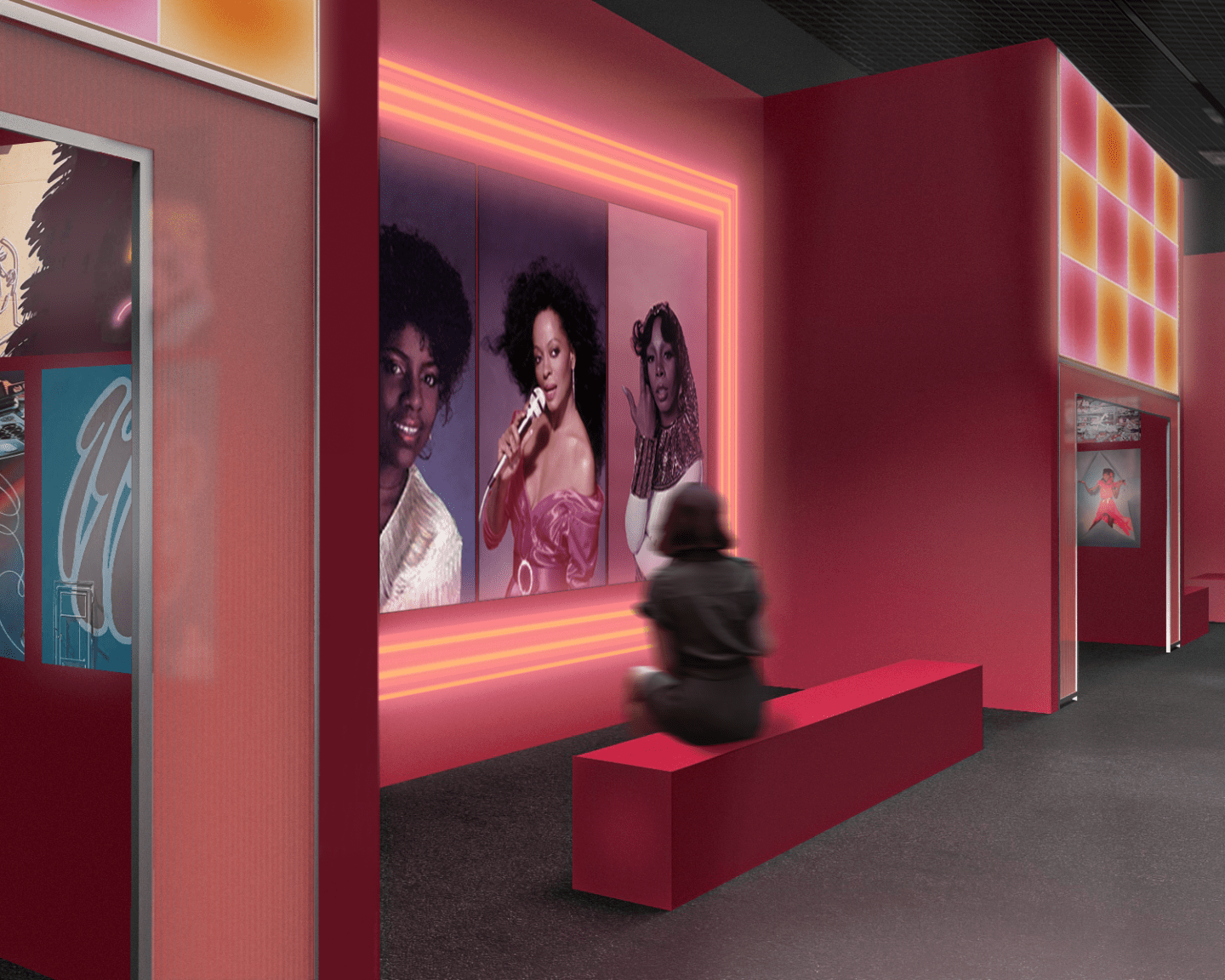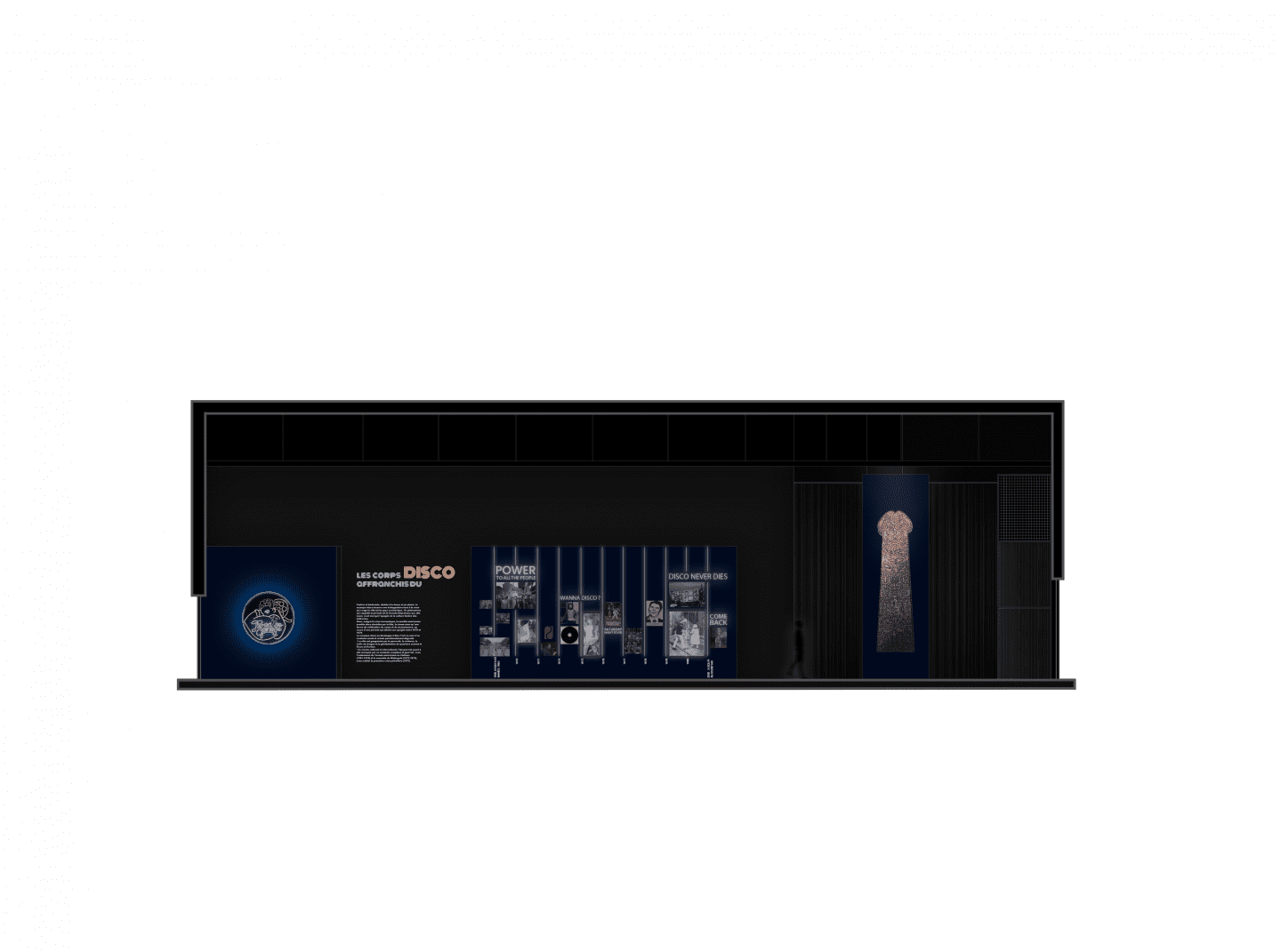 L’exposition Les Corps Affranchis du Disco à la Philharmonie de Paris traverse l’époque du Disco en immergeant le visiteur dans une évocation du New-York des années 1970 suivie d’un univers de Discothèque.