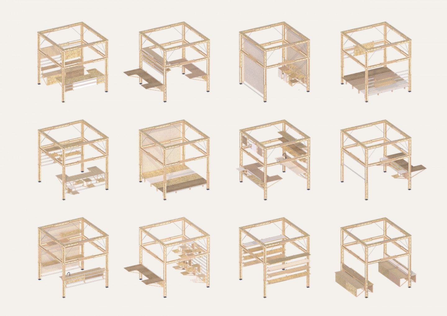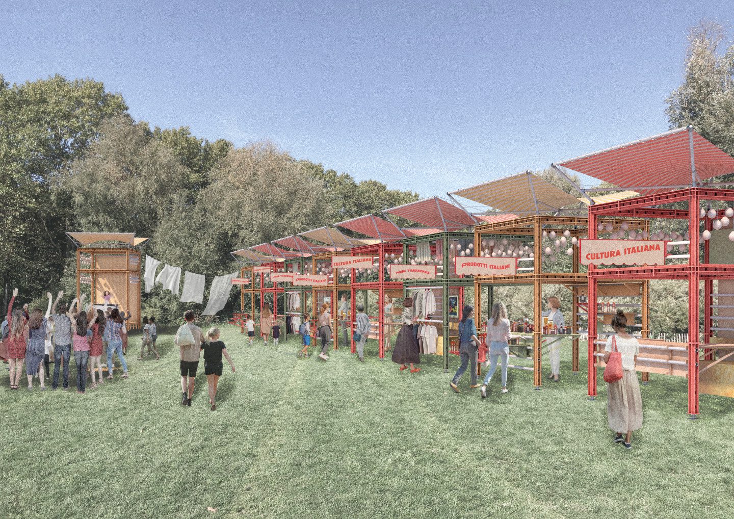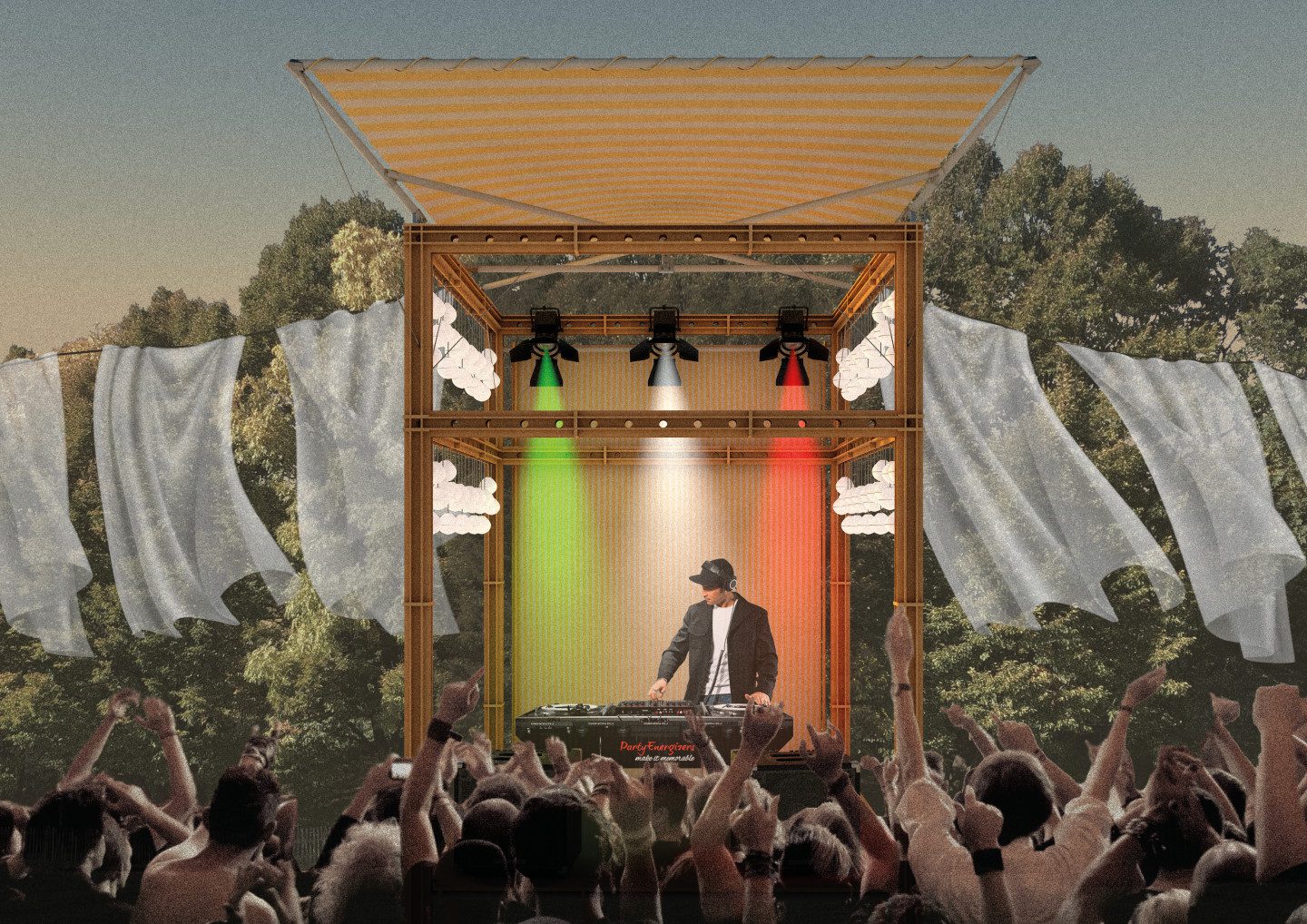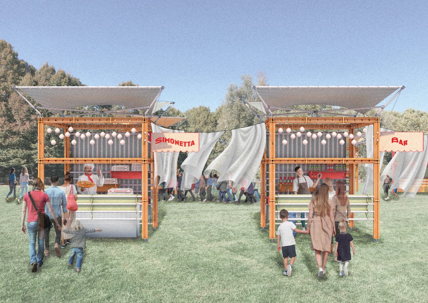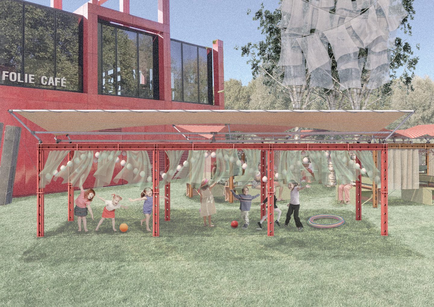 Folie Day’s est une solution pratique, écologique et économique pour l’organisation de festivals dans le parc de la Villette.Ses structures se déclinent autour d’une forme cubique grâce à une collection d’accessoires modulables répondant aux nécessités d’un festival. Inscrites dans l’identité de la Villette, elles s’habillent de décors sur mesure en fonction des évènements. Porteuse de valeurs contemporaines, sa conception se caractérise par l’utilisation de matériaux de réemploi locaux ainsi que par les techniques de fabrication des FabLabs présents sur le site.Ici mises en oeuvre pour le festival Villettecittà organisé par le Trabendo et Kermès, les structures arborent une identité colorée et festive à travers des accessoires inspirés de symboles de l’Italie.