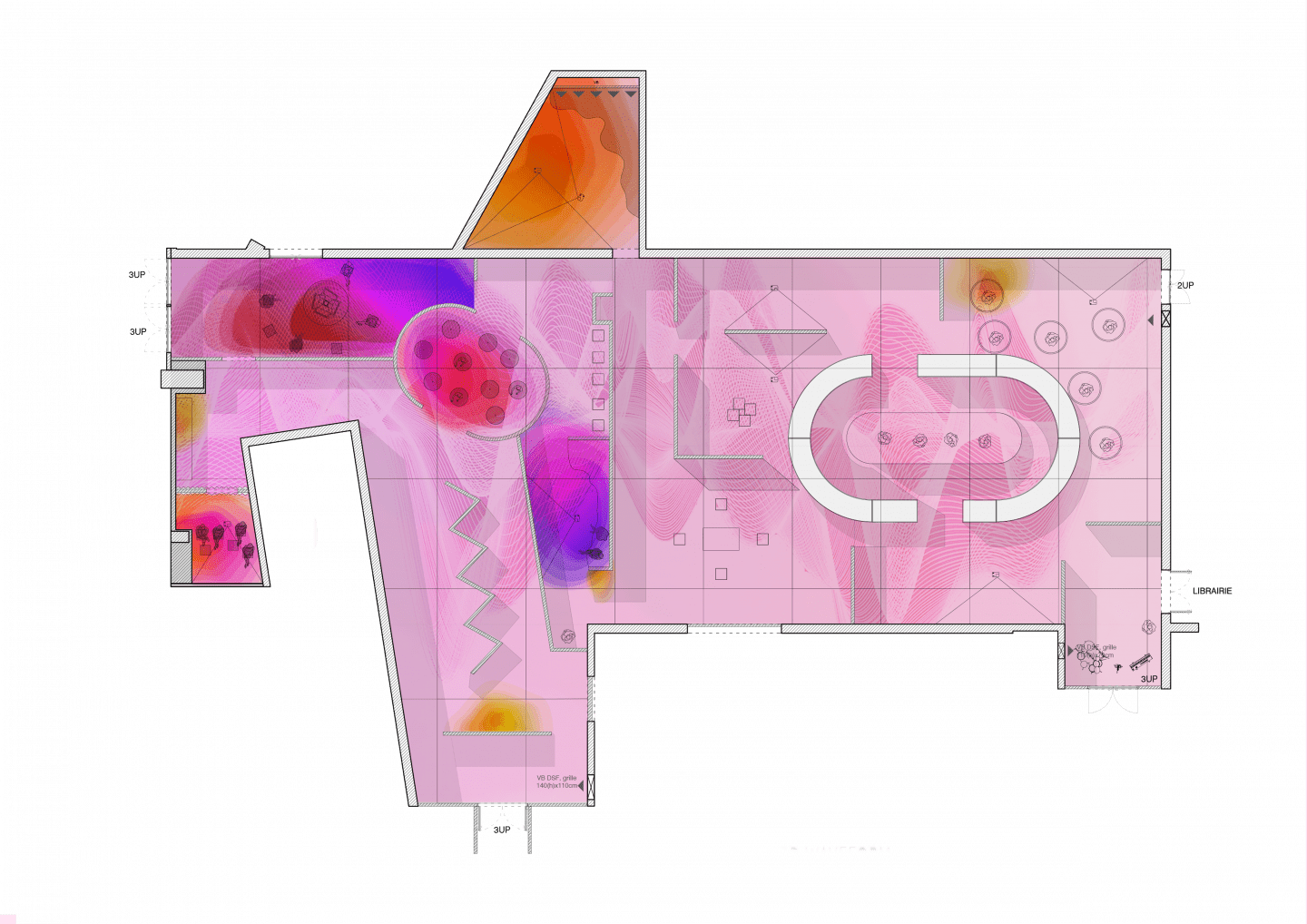 Des moments plus individuels, plus intimes, plus arrêtés sont créés tout au long de l’exposition avec 4 sous-espaces sonores.