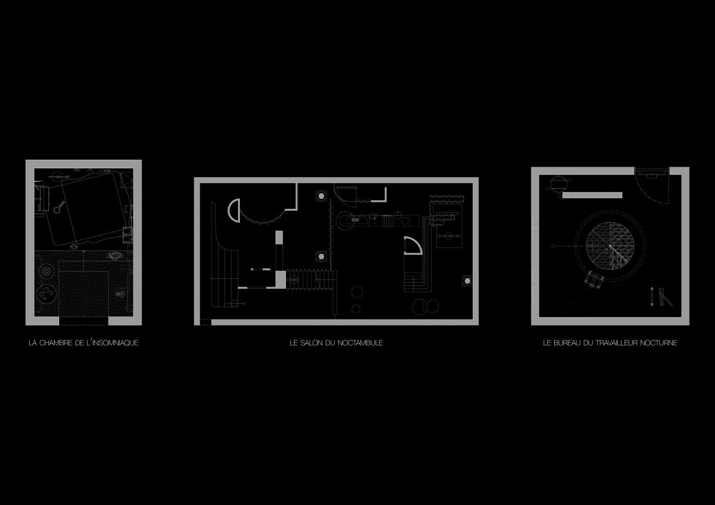 En pleine transgression des normes sociales, le Noctambule se divertit la nuit en souhaitant oublier le lendemain. Il cherche à perdre ses repères spatiaux et temporels afin de se laisser entraîner par l’obscurité et ses multiples possibles.