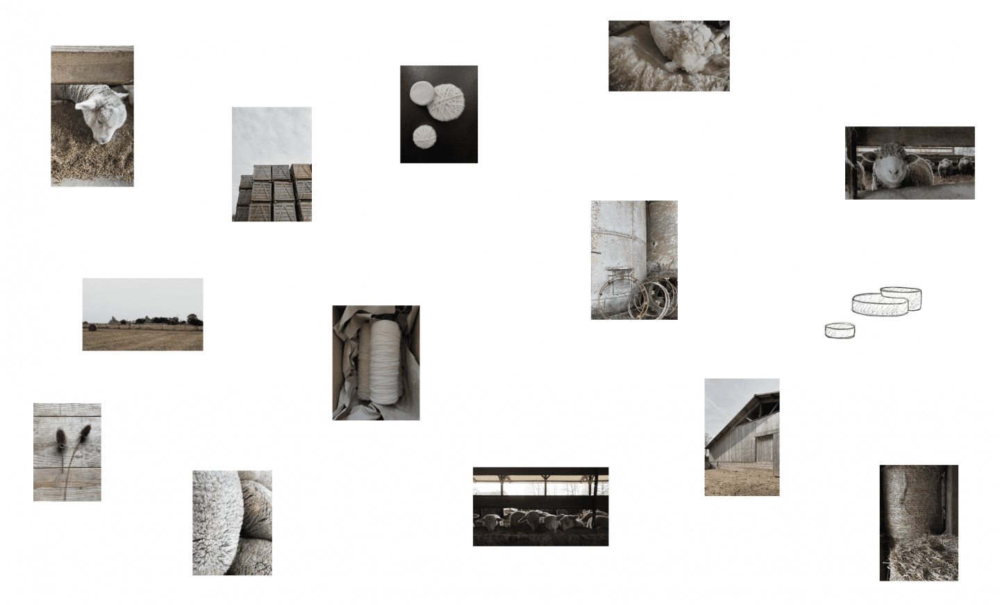 Explorer olfactivement l’univers de la laine, pénétrer l’atmosphère d’une bergerie, la poussière échappée des mangeoires à blés, les odeurs de foin foulé et le suint animal déposé sur les toisons récoltées au printemps, les manipulations de laine brute, permet un récit autour d’une matière qui inspire une création olfactive et visuelle.