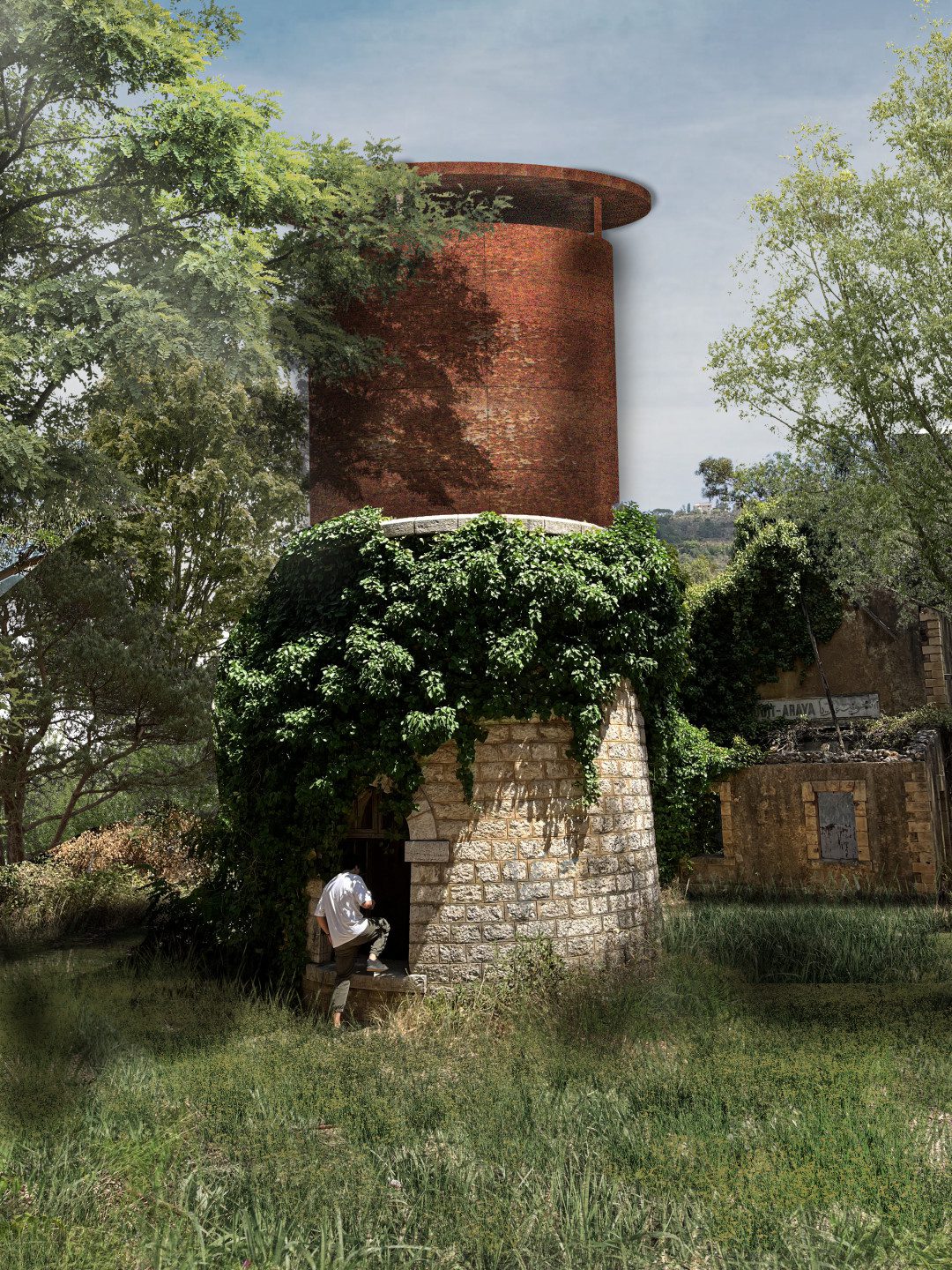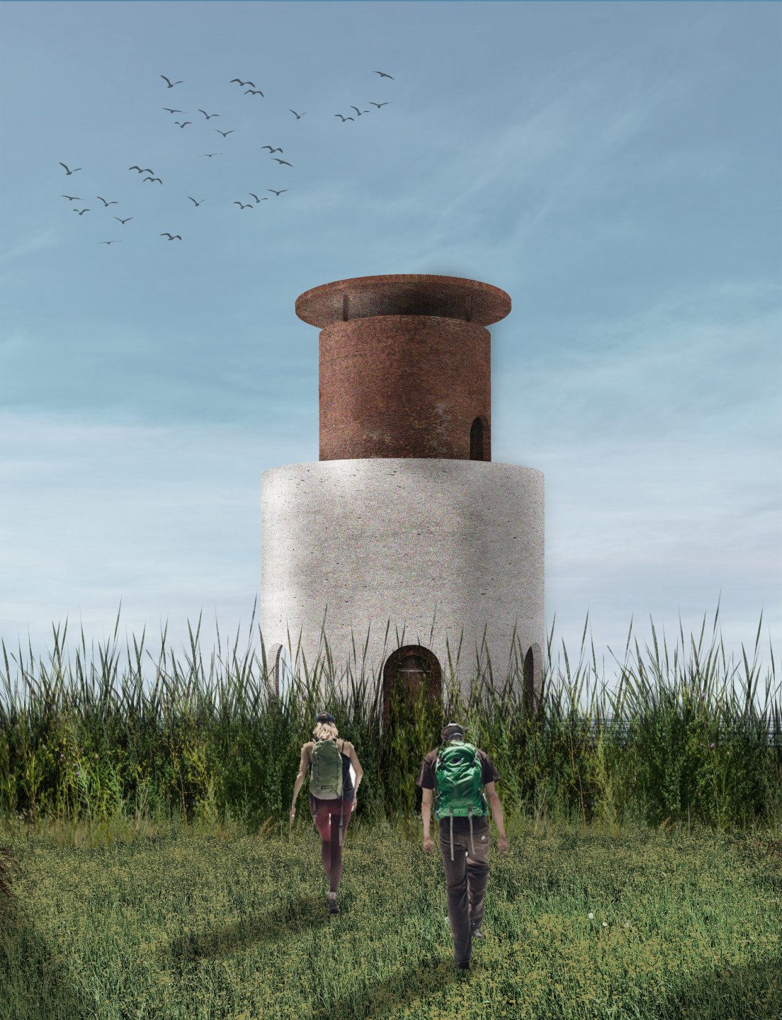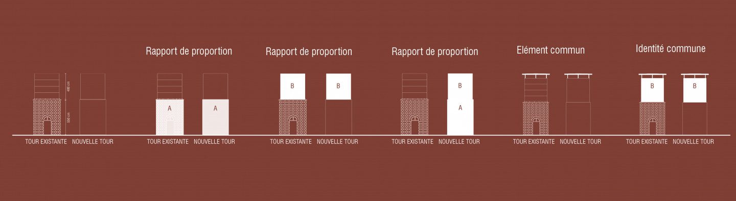Présence d’une tour que l’on retrouve dans toutes les gares. La tour sera travaillée comme un des repères marquant le passage du train.