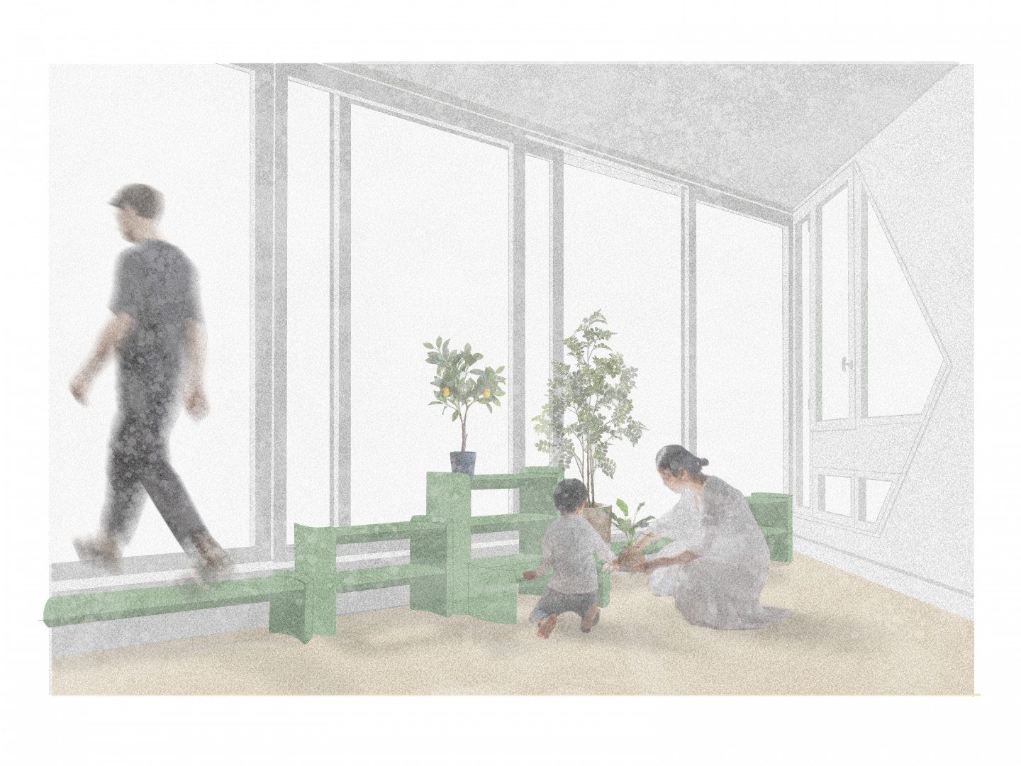 Fenêtre habitée est une réflexion centrée autour de la fenêtre. Comment dessiner une nouvelle manière d’investir la « façade intérieure », cette façade cachée et délaissée et s’approprier la grille?