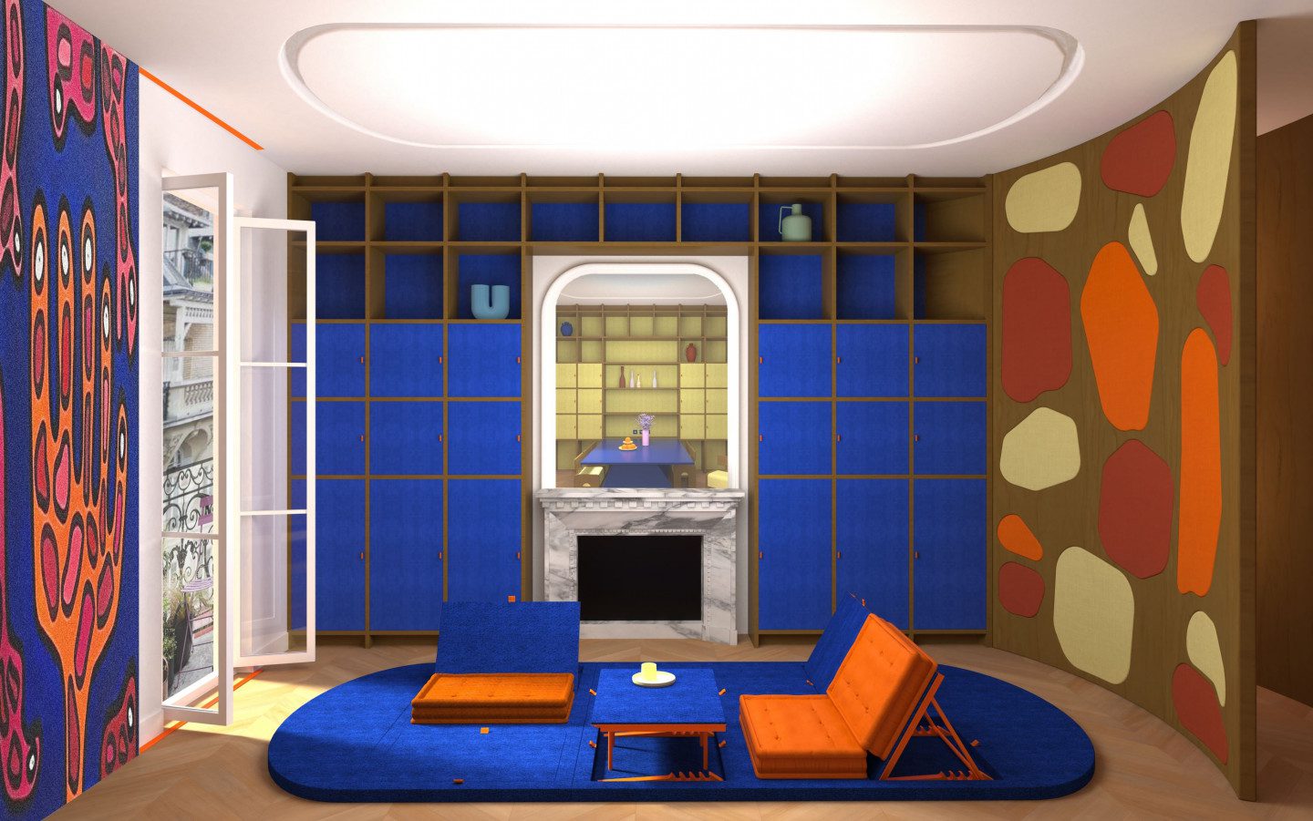 Rendre au somnambule la liberté de vivre ses rêves dans le volume de l’appartement implique la suppression de tout obstacle dans la déambulation nocturne du somnambule. Ainsi, l’ensemble du mobilier du séjour, de la salle à manger ainsi que de la chambre parentale ont été redessinés afin de disparaître une fois la nuit tombée.
