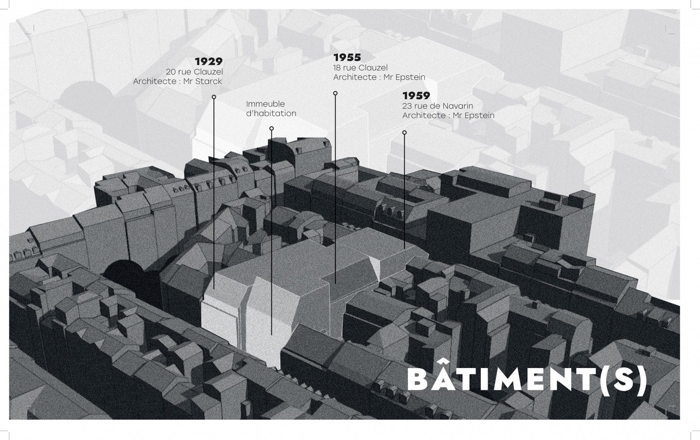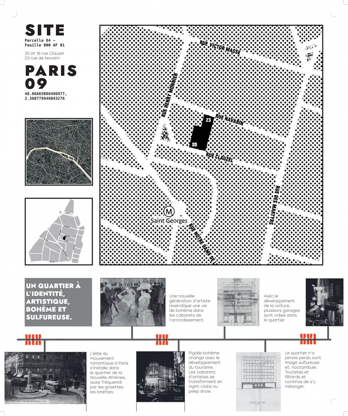 La place de l’automobile diminue chaque année et annonce l’obsolescence des garages à silo; ces architectures de béton symboles du mode de vie énergivore promu par la ville du XXe siècle.L’urgence de réduire les émissions de CO2 dans le secteur du bâtiment nous confronte à l’avenir de ces lieux. Les matériaux les plus verts étant ceux déjà présents, la reconversion plutôt que ladestruction s’impose comme la réponse la plus appropriée. Conserver l’existant, c’est aussi respecter un passé qui a contribué à la diversité du paysage parisien. La réhabilitation du parking de la Place Saint George se veut comme un lieu de transition entre XXe et XXIe siècle. Je propose de développer dans cet enveloppe de béton, symbole de la ville d’hier, un programme critique pour la société urbaine de d